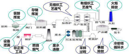 圖 典型石油煉制工業(yè) VOCs 廢氣排放節(jié)點(diǎn)