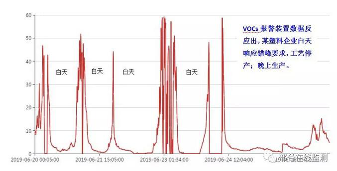 3、VOC超標報警監測系統是企業錯峰生產時“自證清白”的有力證據。臭氧濃度高峰時大氣污染防治部門一般要求采取錯峰生產,高溫時段10-16時涉VOCs排放單位不得生產,通過VOCs監測數據的變化可以直接反應企業是否落實錯峰生產制度,為企業提供數據支持。