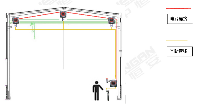 配有HA8108防爆型可燃有毒氣體控制器的氣體監控系統的維護示意圖