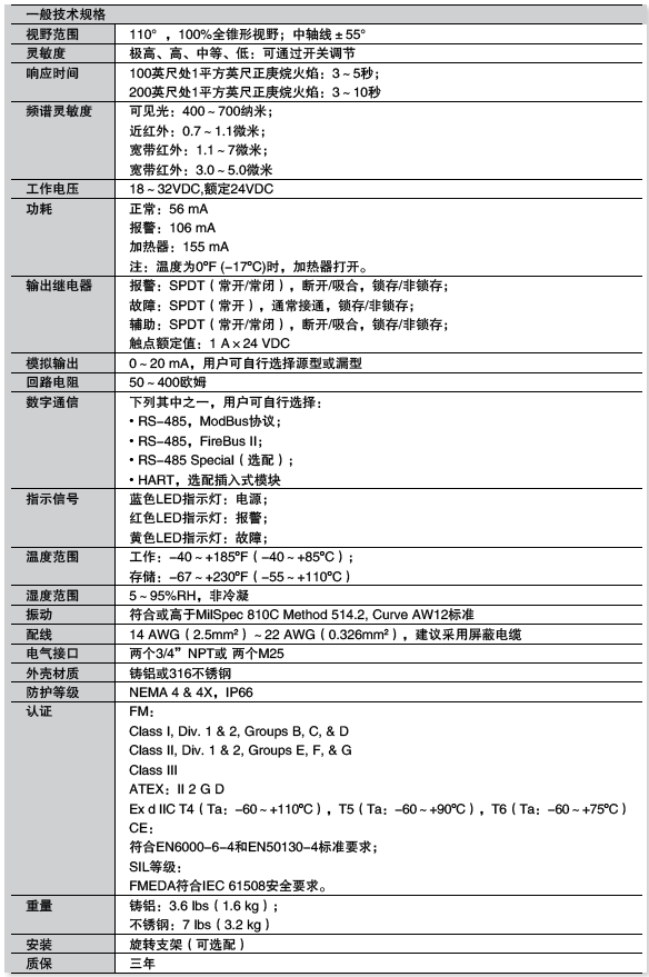 ? 可在各種環境條件下檢測碳氫化合物和非碳氫化合物燃料火焰;