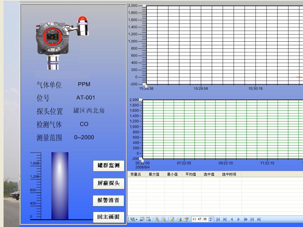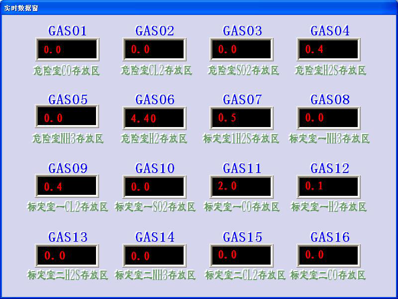 操作人員可以通過工控機的觸摸屏、操作員站和工程師站等人機交互界面,實時監視廠區內所有檢測點的情況,主要有氣體濃度值,報警上限,實時曲線和歷史數據等。當發生報警時也可以通過工控機進行消音和報警響應。