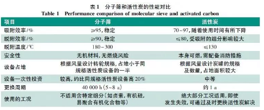 吸附濃縮使用的吸附劑一般有分子篩和活性炭2 種,即將大風量低濃度的廢氣,吸附后實現達標排放,動態吸附飽和的區域,經再生氣再生,氣量降低若干倍,但再生氣中污染物濃度則增加若干倍,從而實現系統處理能耗合理的目標。