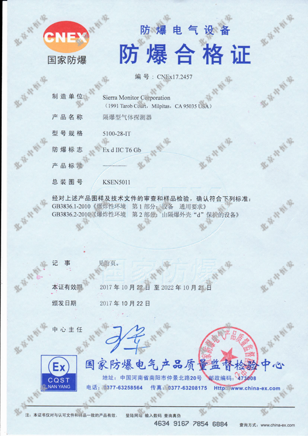 防爆級別:Class 1, Div.1, Group B,C,D  Class 1,Zone 1,group IIB+H2 IP66