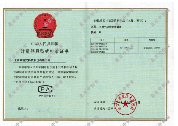 計量器具型式批準證書